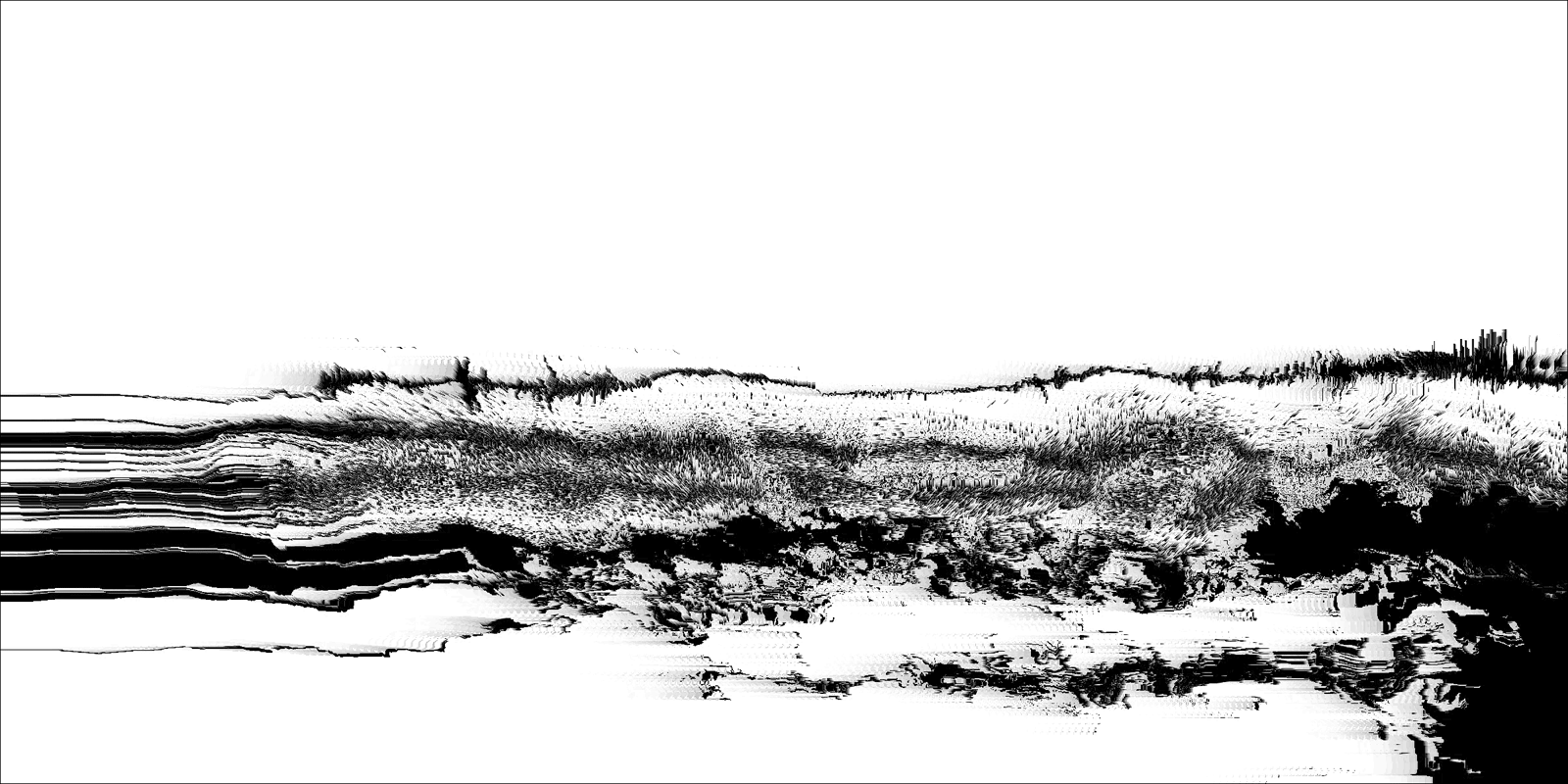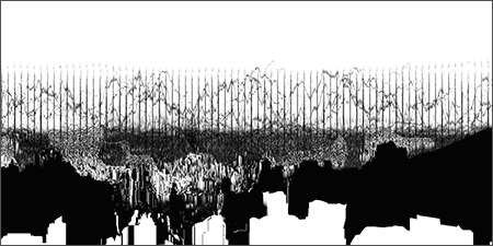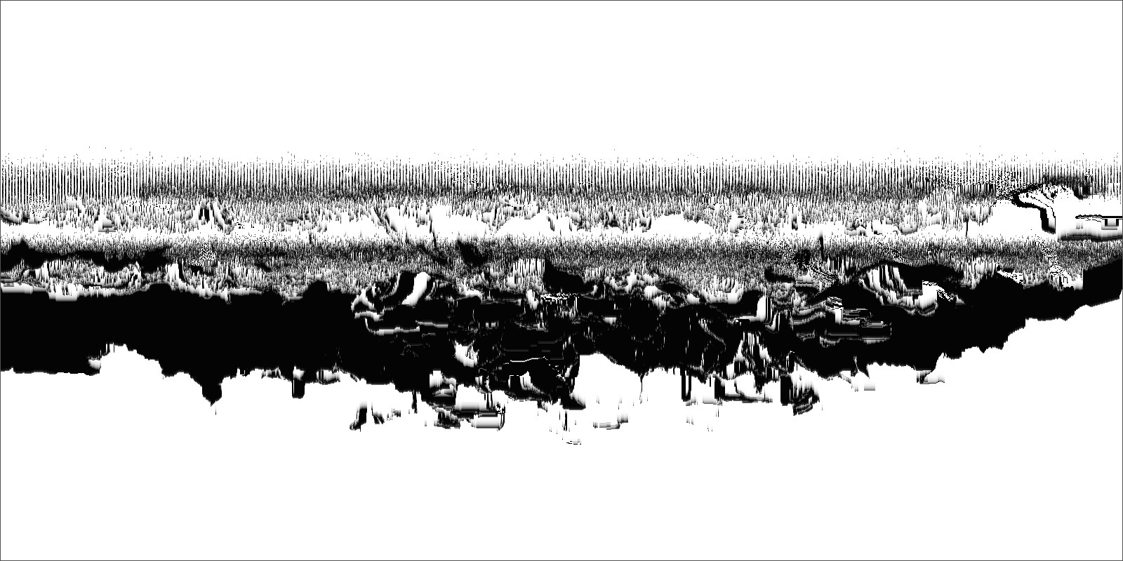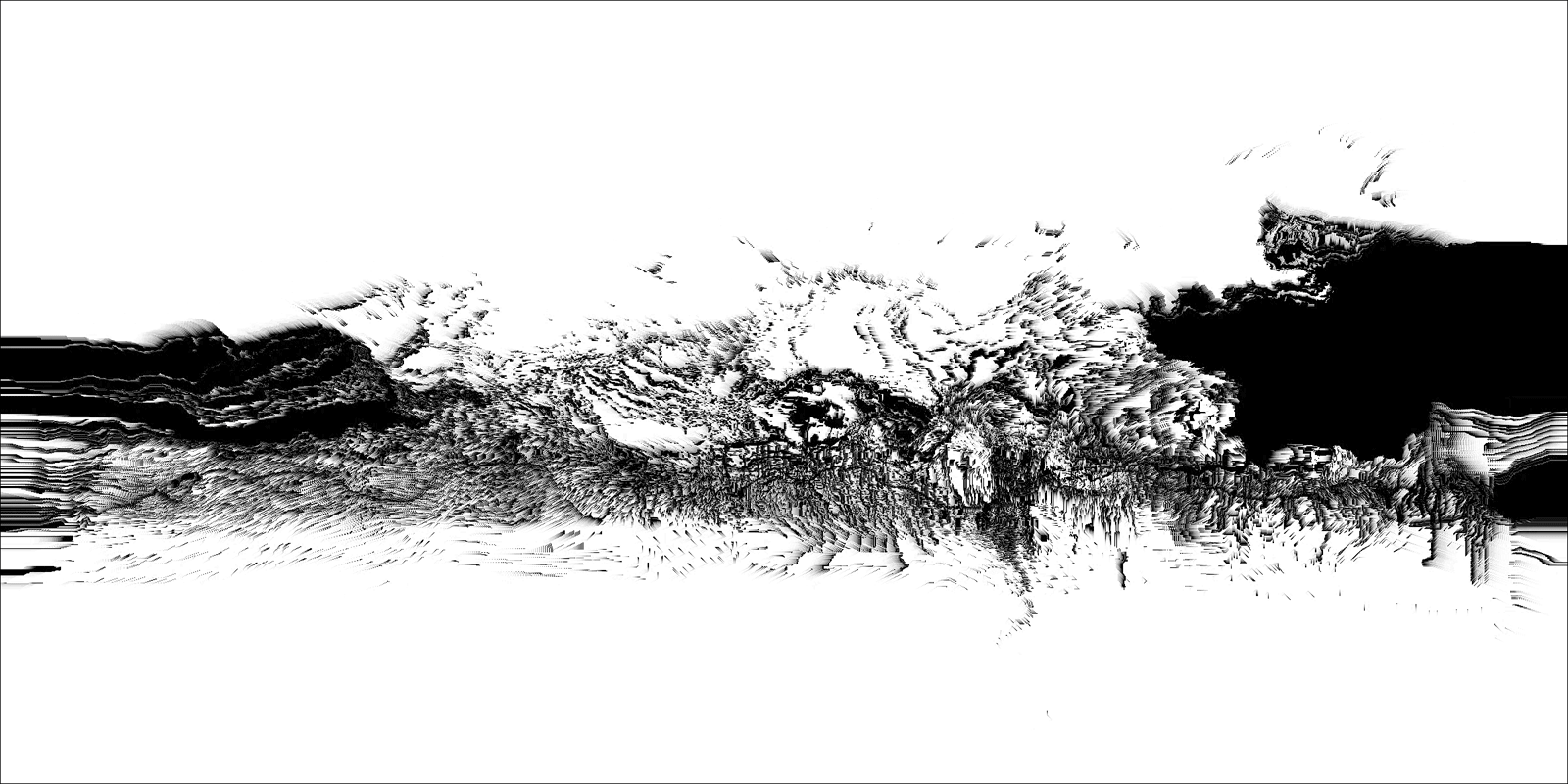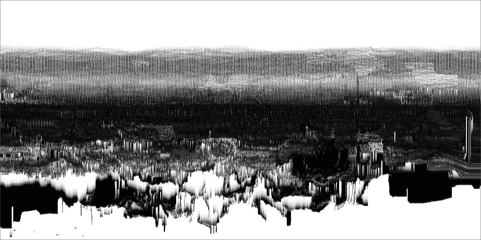 Loci_ is a series of prints generated by custom sound-to-image visualization software. Audio field recordings are fed into the system, converted to visual waveforms, then manipulated in real-time into abstract imagery that invokes the perception of landscape. There is a limited degree of control in this real-time manipulation, allowing for a range of unexpected effects to occur.