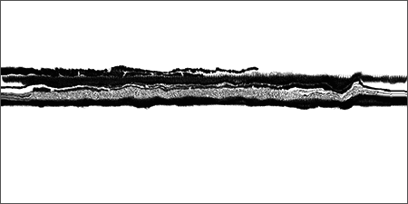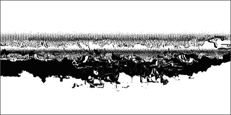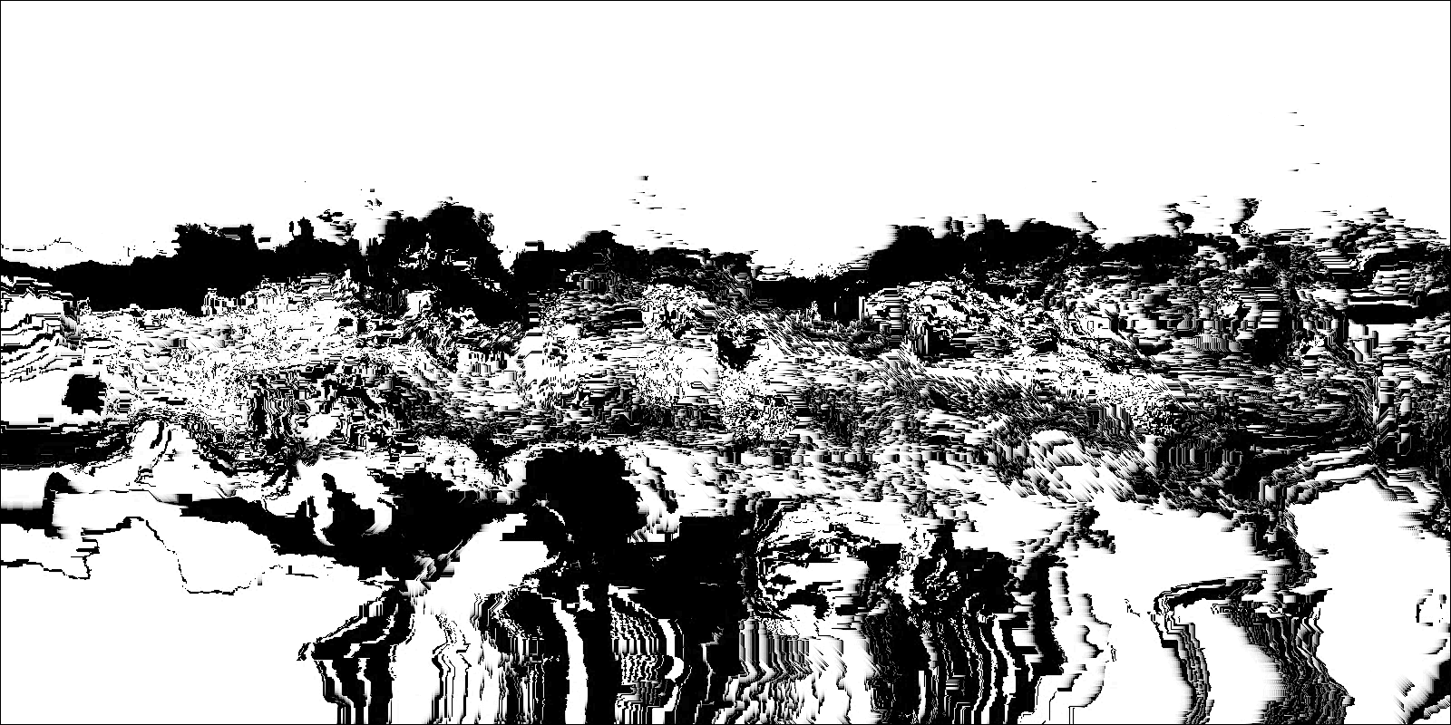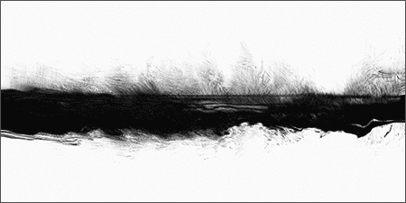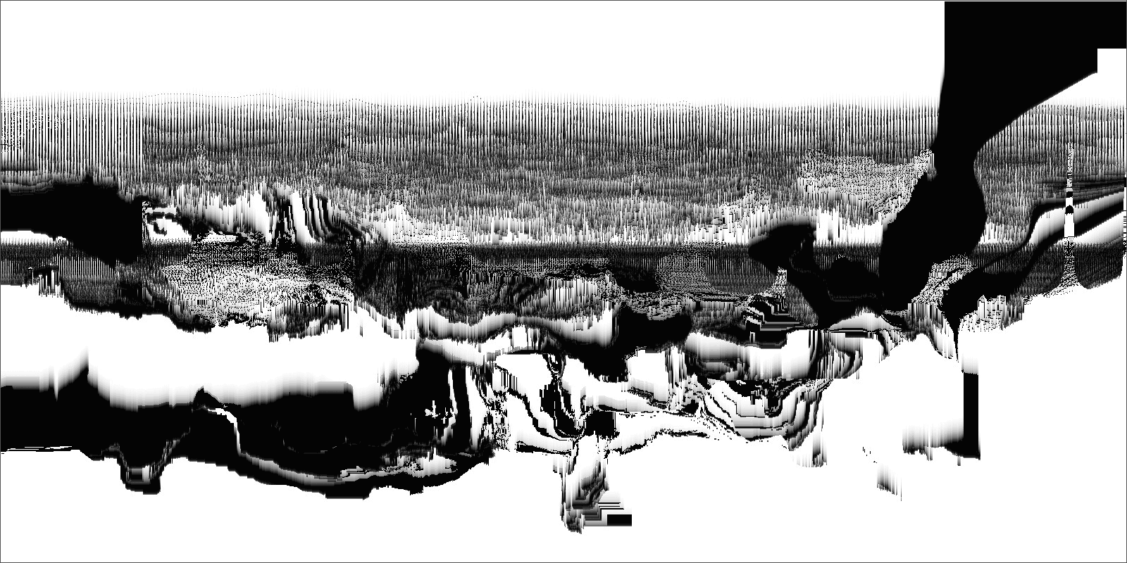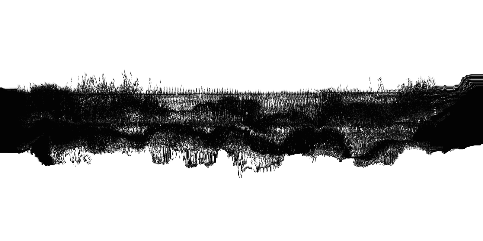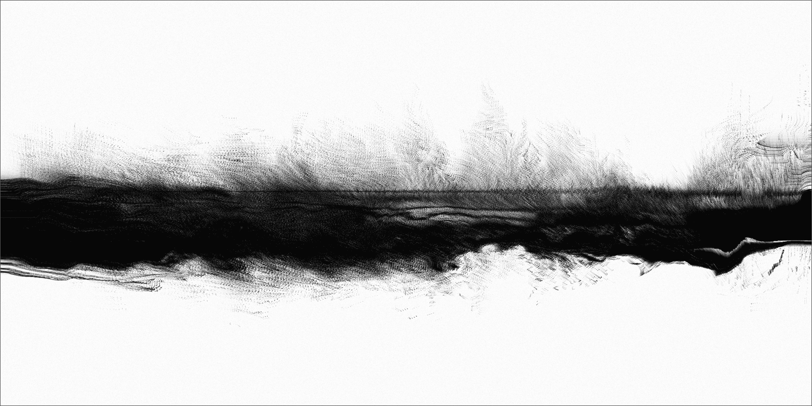 Loci_ is a series of prints generated by custom sound-to-image visualization software. Audio field recordings are fed into the system, converted to visual waveforms, then manipulated in real-time into abstract imagery that invokes the perception of landscape. There is a limited degree of control in this real-time manipulation, allowing for a range of unexpected effects to occur.