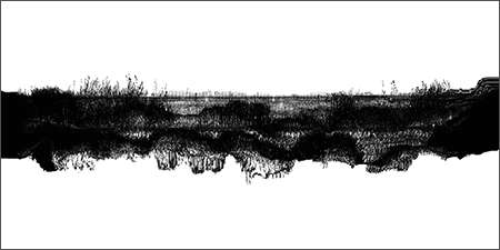 In addition to taking form as digital prints, this series also exists as a real-time video installation that converts the ambient sound from the exhibition space into slowly shifting landscape forms.