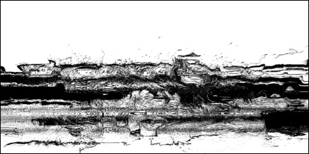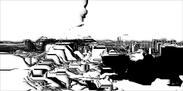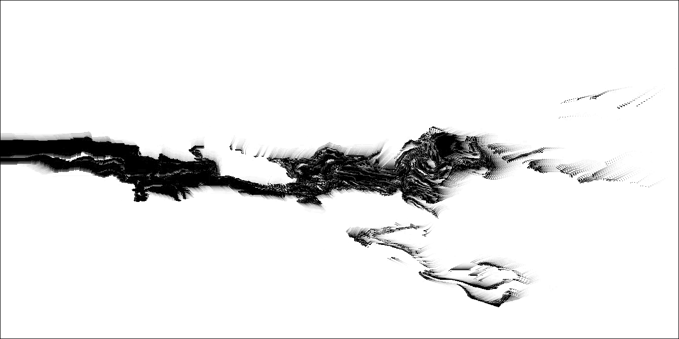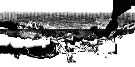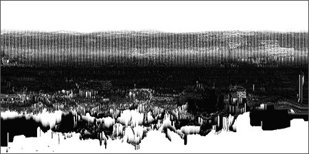 The project continues my focus on the interstices of terrain and phenomenology, and the discarding of information that occurs during transcoding/translation from one state to another. Also an influence in the project is the article "The Lie of the Land", written by cultural geographer Don Mitchell. In this text Mitchell critiques a fellow geographer who claims one can glean the truth of any given landscape -- its history, geology, class structure, etc -- simply by looking at it. In fact, says Mitchell, the view that any landscape presents is manufactured to tell a certain story, and hides more than it reveals. In Loci_, the original space and sound of recording is alienated from and exists in parallel to the abstract non-place of the image.